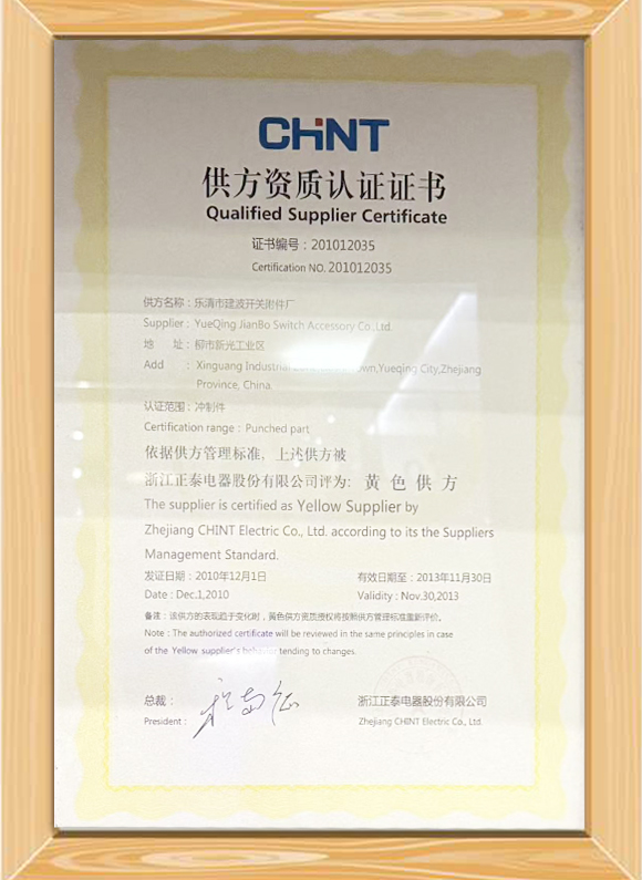2010年正泰供方资质证书